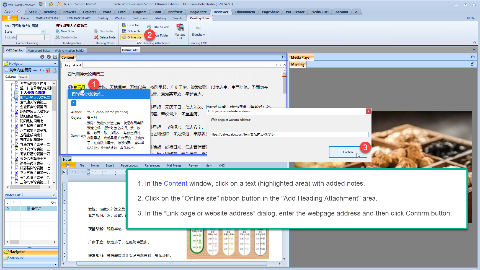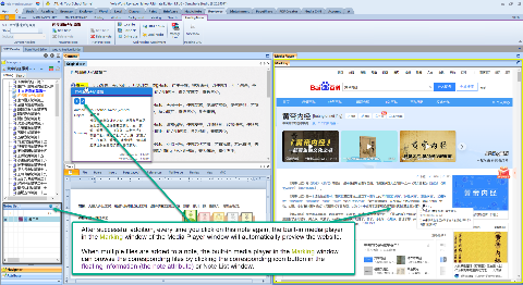 When using the built-in Word Reader to read Word, users can add any comments at any position in Word. Each comment can include a fully functional Word note and multiple files and web links. When selecting comments, the notes, files, and web links in the comments can be replayed synchronously in the built-in previewer. The added comments will not change the original Word reading file. 用户在使用内置的Word阅读器阅读Word时,用户可在Word中任意位置添加任意个注释。每个注释可包含一个全功能的Word笔记和多个文件和WEB链接。选中注释时,注释中的笔记以及文件和WEB链接可在内置的预览器中同步的回放。添加的注释不会改变原阅读Word文件。
