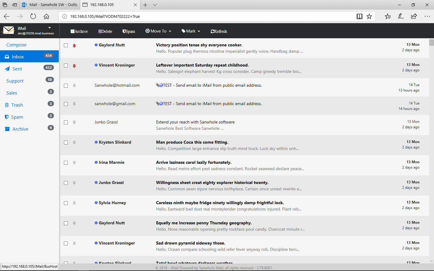 iMail Enterprise-class internal email system include self-host server and fully web access clients. iMail provides Microsoft Exchange enterprise internal e-mail function. Even better, iMail server doesn’t need Windows server, windows 10 is enough. iMail client doesn’t need outlook, a browser is enough. |