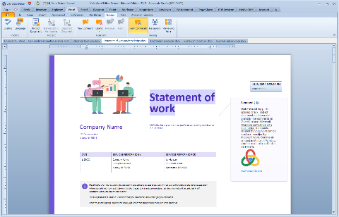 Track Changes support allows you to retain a history of edits made to a document. With this feature, you can obtain, accept or reject changes made to a document. Documents - along with their revisions - can be printed and exported to PDF.