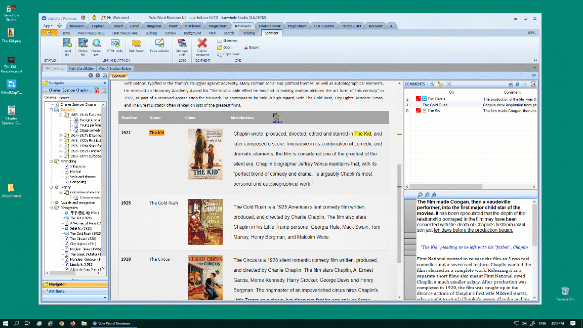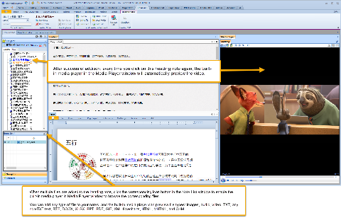 The software can import a Word file and let the user read the Word file inside the built-in Word Reader. During the reading process, the user can write notes in any specified position. You can also save pictures, audio, videos and files that you refer to during reading for the position, such as PDF, Excel, Word, PPT, etc., as well as network resources, such as websites, web pages, network audio, video, PDF and network sharing videos, such as YouTube, Vimeo, BiliBili, etc. Every time you read to the position again, the notes you wrote at that time and the saved files and web resources will be displayed synchronously again on the embedded multimedia previewer. The software also provides multi-layered artboards, flowchart drawing tools. As well as features such as highlighting when reading, changing backgrounds, etc. The software saves the original Word file and user reading process data into a single-file VMC database. The software does not make any edits to the original Word file and can export the original Word file at any time. This makes it possible to archive and preserve the original document while also keeping a personal reading record.