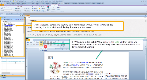 When using the built-in Word Reader to read Word, users can add any comments at any position in Word. Each comment can include a fully functional Word note and multiple files and web links. When selecting comments, the notes, files, and web links in the comments can be replayed synchronously in the built-in previewer. The added comments will not change the original Word reading file. 用户在使用内置的Word阅读器阅读Word时,用户可在Word中任意位置添加任意个注释。每个注释可包含一个全功能的Word笔记和多个文件和WEB链接。选中注释时,注释中的笔记以及文件和WEB链接可在内置的预览器中同步的回放。添加的注释不会改变原阅读Word文件。
